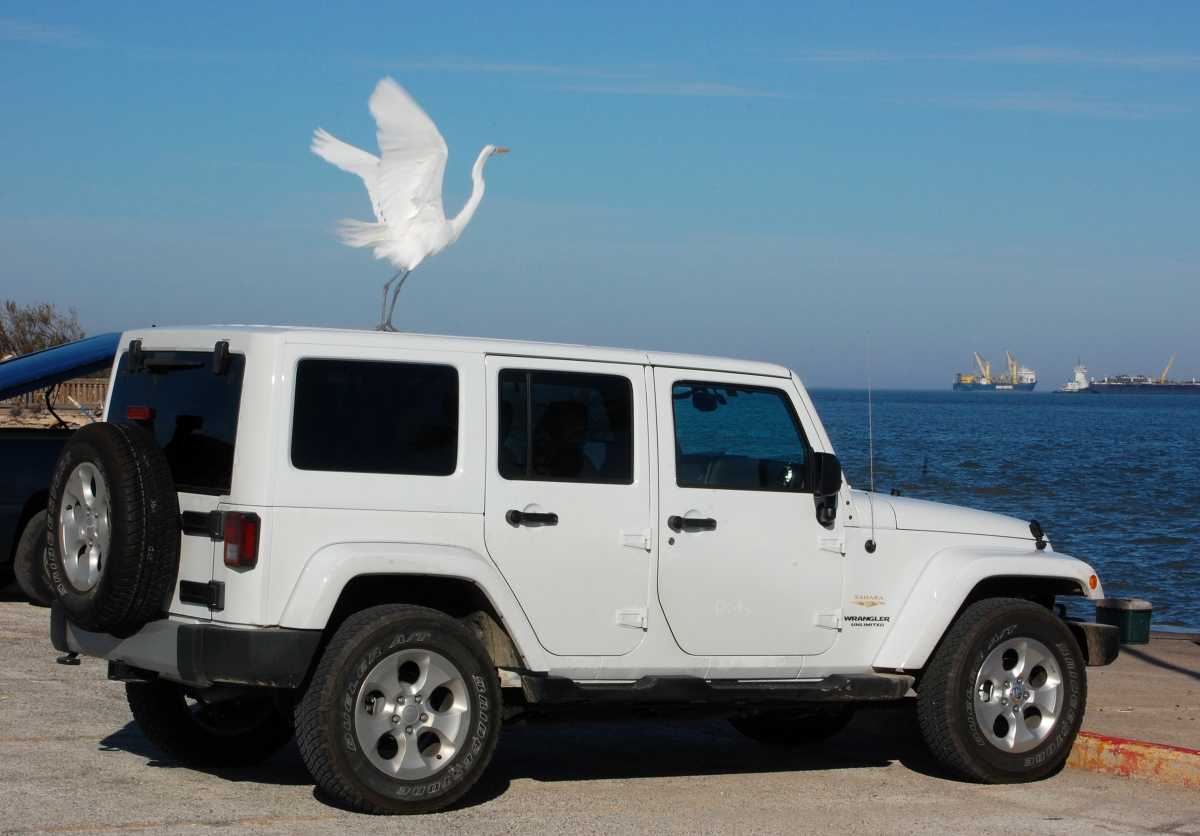 We have a soft spot for Great Egrets. One chose to christen our new Jeep a few months ago. See the photo below near the start of this blog. We've let this image become symbolic of our new freedom to travel at will. Hence, today's experience held a special poignancy for us.